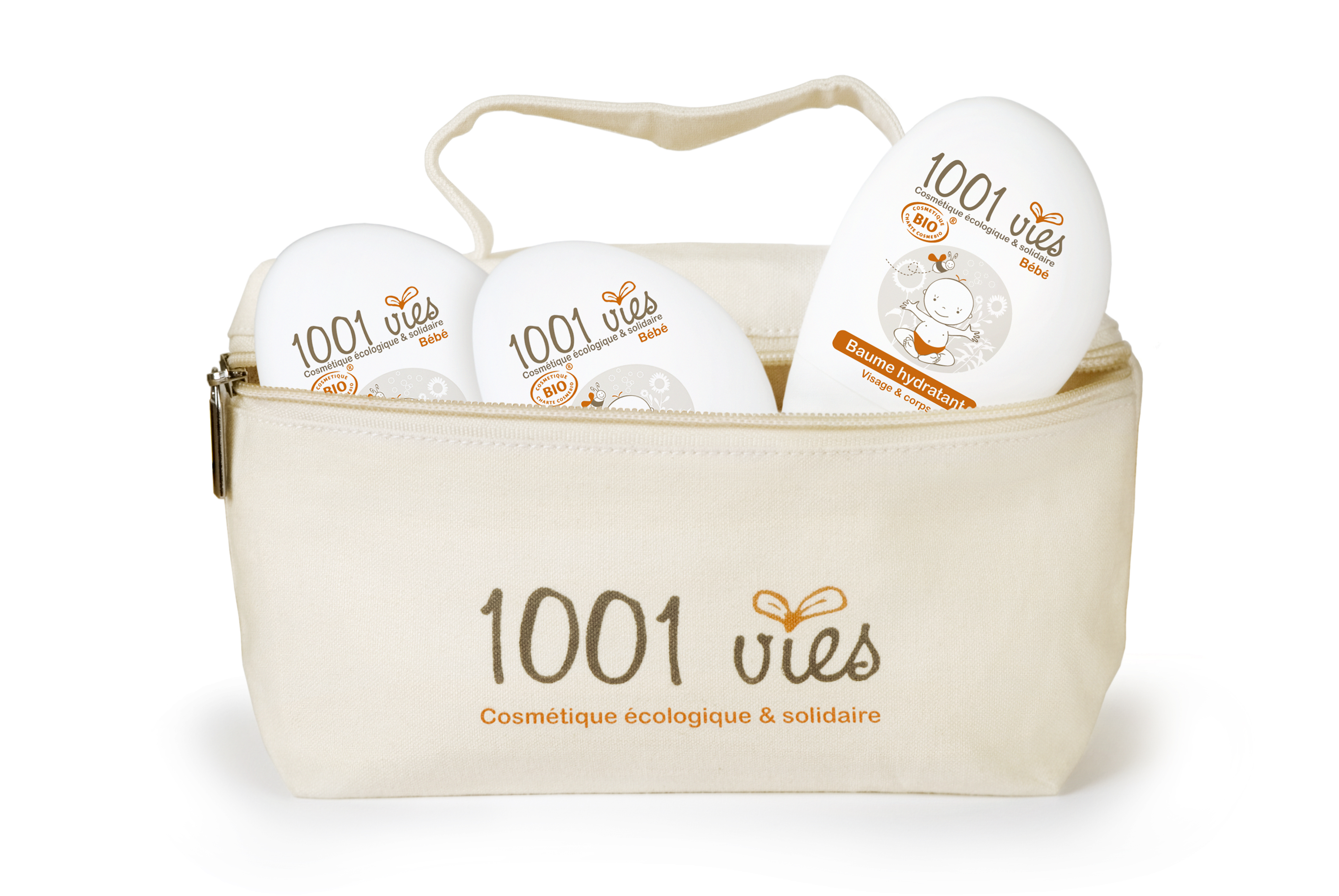 1001 Vies est une gamme d’hygiène et de soin pour bébé composé de 4 produits: 1 lait de toilette,1 gel moussant, 1 baume hydratant et une crème pour le change. C’est une gamme écologique et solidaire; nos actifs sont issus d’une démarche écosolidaire locale: la région Midi Pyrénées.
