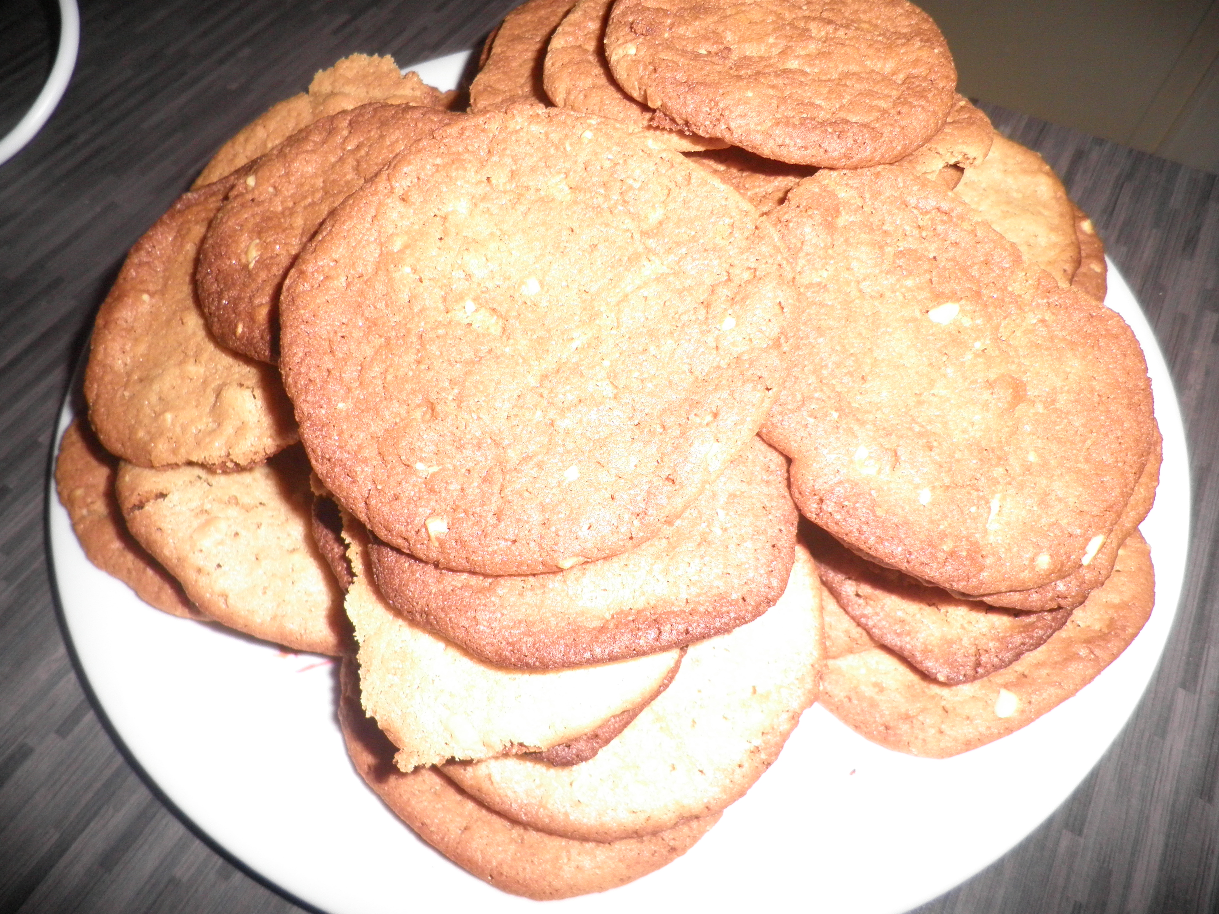 J’ai envie de partager avec vous une recette de cookies suuuuuper bon !! avec du Peanut Butter, vous connaissez ? traduction : beurre d’arachide ! vous avez déjà goûté ? miam c’est trop bon ! ma cousine, lorsque nous étions petites, m’avait fait découvrir une tartine de peanut butter avec de la confiture de fraises !!! aïe aïe !! je me rappelle la tête que je devais faire du haut de mes 9 ans, je me disais mais qu’est-ce que ce mélange encore ? depuis j’adore mais… j’évite !!! soyons raisonnable tout de même !!