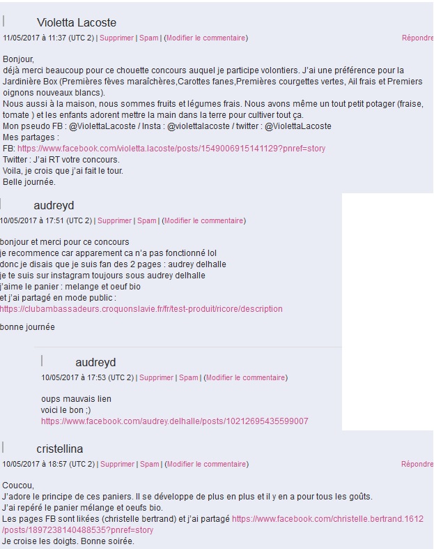 Aujourd’hui, j’ai le plaisir d’offrir à 3 d’entre vous donc 3 gagnants, un panier Mélange du jardin (4 kg) à récupérer dans un point relais de votre choix. Et une deuxième chance sur mon compte Instagram, deux paniers sont à gagner.