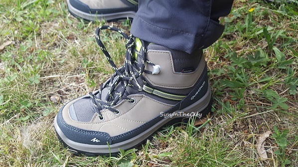 – Une paire de chaussure Forclaz 500 : qui assure un bon maintien, une semelle crosscontact qui permet une bonne adhérence, une membrane imperméable qui tient les pieds au sec, un amorti intégral en PU sur toute la longueur du pied, existe du 28 au 38, prix 39.99 €. Les chaussures existent aussi en format tige basse. Pour des petits pieds, je privilégie la tige haute, surtout pour nos randos.