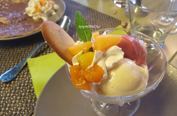 J’ai aimé cet esprit famille, qui se ressent dans le service et les attentions portées aux enfants, surtout par rapport aux menus. Les miens étaient assez épuisés de leur grosse journée, et ils se sont accommodés en proposant des petites assiettes de jambon/melon pour Kirikou, du haut de ses six ans c’était parfait pour terminer avec une délicieuse glace.