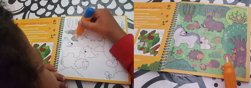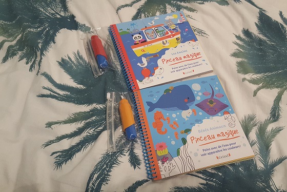 Les petits livres avec un pinceau magique, là nous avons eu les versions « Bébés animaux ». C’est magique en effet, il suffit de remplir d’eau le petit réservoir du pinceau, et de passer sur les décors, pour voir apparaître les couleurs. Une fois séché, les couleurs disparaissent, ainsi on peut recommencer à l’infini. Mon Kirikou adore ces livres du haut de ses 6 ans, et je trouve que c’est une bonne idée pour les occuper pendant un trajet en voiture/avion/train. Sorti le 18 mai, prix 7.95 €