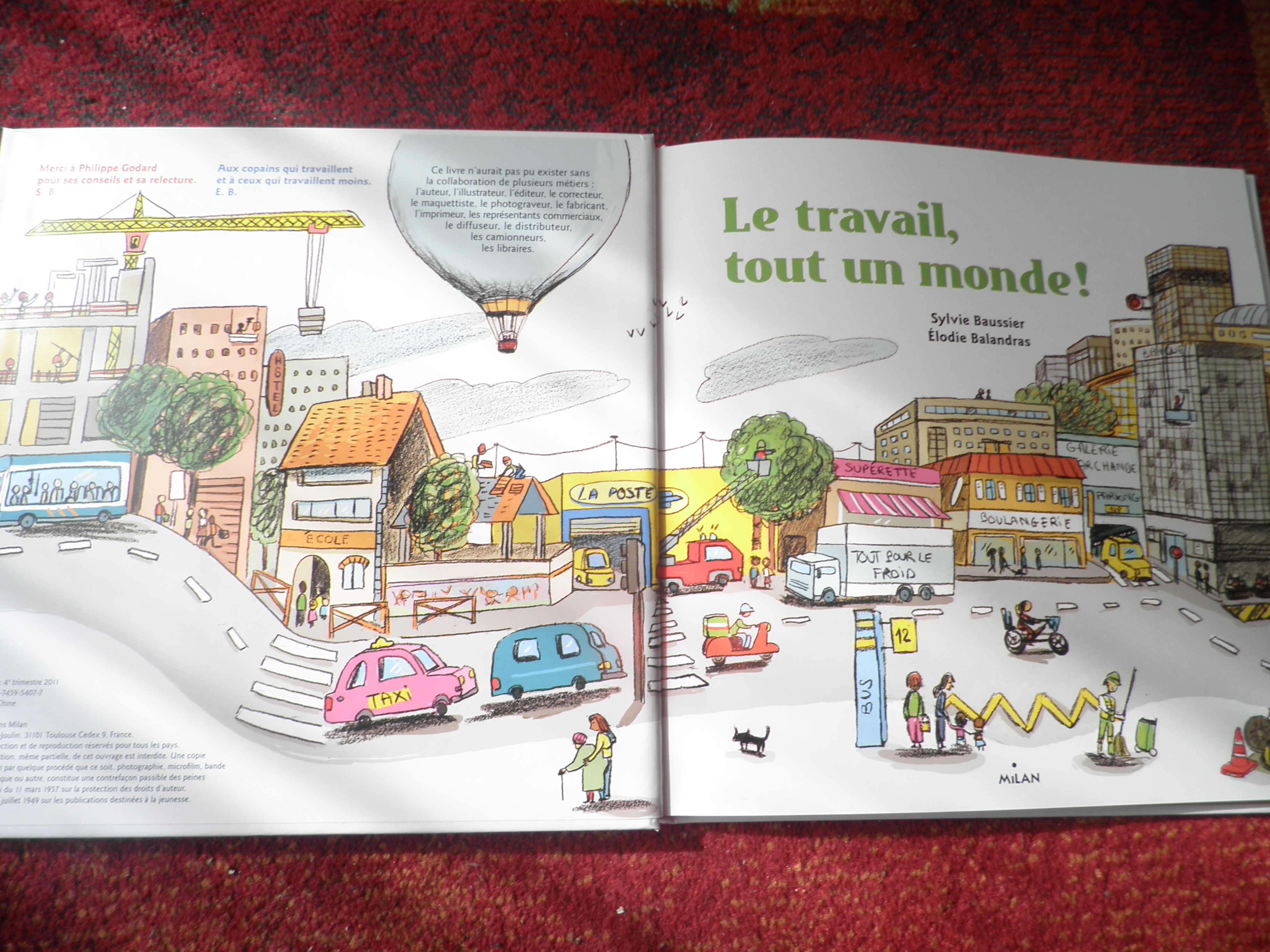 Le résumé : « Que font donc les parents pendant que les enfants sont à l’école ? Beaucoup travaillent : ils sont chimistes, professeurs, coiffeurs, ébénistes, imprimeurs… D’autres recherchent un emploi. En tout cas, le travail tient une place énorme dans la vie des adultes et dans toute la société où nous vivons. Et, derrière ce mot, il existe tout un monde ! Ce livre l’explore et l’explique aux enfants. » Un livre de Sylvie Baussier aux Editions Milan.