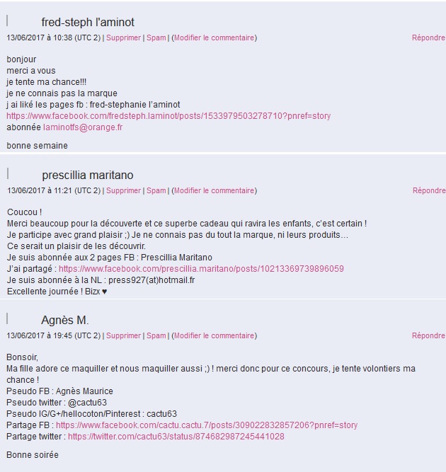 Edit du 29 juin 2017, bravo aux trois gagnants !