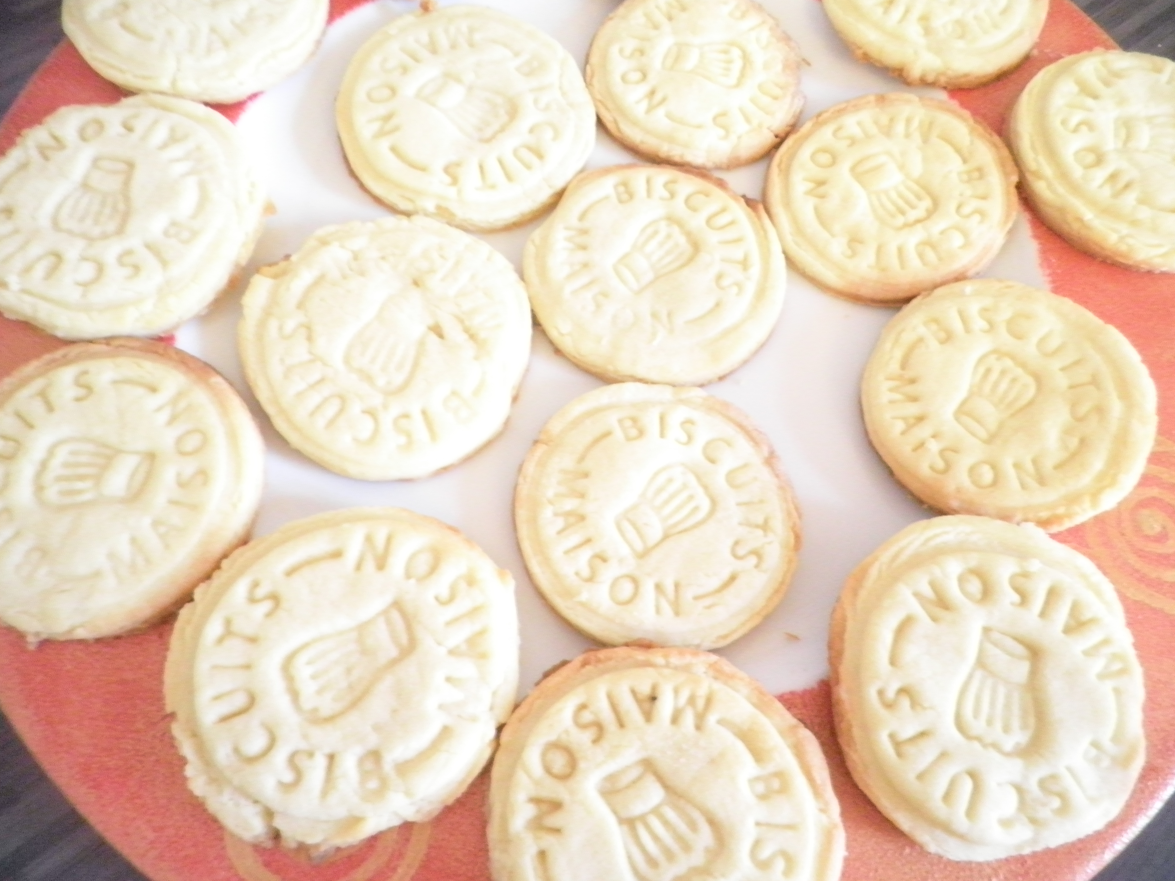 C’est drôlement chouette les tampons pour les cookies !! j’ai fait le test et j’en suis enchantée ! j’étais fière de montrer les nouveaux biscuits « maison » lorsque tout le monde est arrivé de l’école… « oh maman ! c’est écrit biscuit maison, c’est toi qui les a fait ? » mais oui mais oui !!!