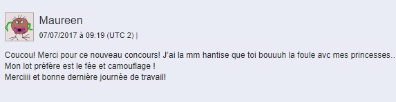 Edit du 26 juillet 2017 , bravo à la gagnante !