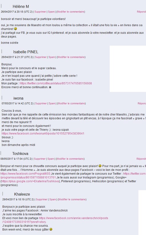 Edit du 11 mai 2017, bravo aux 5 gagnants !