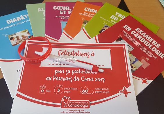 Au travail, nous avons eu une journée Parcours du coeur, je m’y suis présentée, un petit questionnaire, quelques tests, discussion avec un cardiologue puisque je suis très concernée. Des résultats bluffants dixit la cardiologue, rien à dire sur le diabète, cholestérol, mais bon ce serait tout de même bien de perdre ces dix kilos, fallait bien un mais ^__^