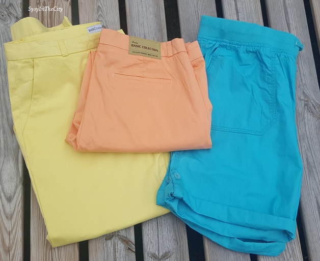 Un peu de soldes, j’ai craqué sur des pantalons colorés et enfin un short, j’ai envie de passer un bel été.