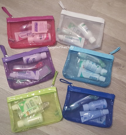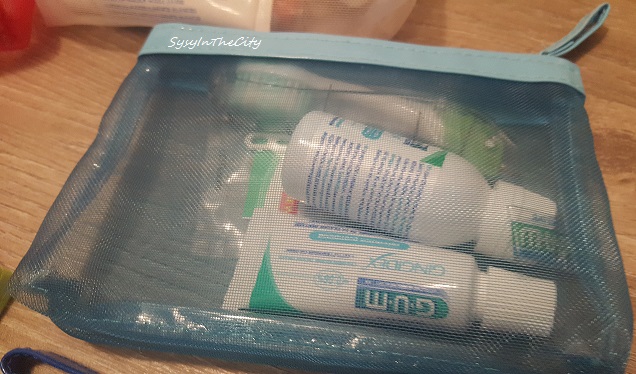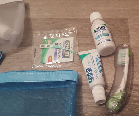 J’ai reçu il y a quelques jours, de jolies petites trousses trop mignonnes de chez GUM, super pratique pour un week-end prolongé, ou pour glisser dans la trousse de toilette en avion, sachant que nous sommes limités par les quantités liquides c’est super pratique ; mais également au travail lorsque je déjeune à l’extérieur ou que j’emporte ma gamelle, j’aime pouvoir me brosser les dents au bureau. On y trouve un tube de dentifrice, une brosse à dents pliable, un bain de bouche , 1 soft pick. La trousse existe en sept coloris, on peut l’acheter en pharmacie et parapharmacie au prix de 4.95 €. Je suis fan de ces mini trousses, d’ailleurs elle va vite me servir dès vendredi ;)