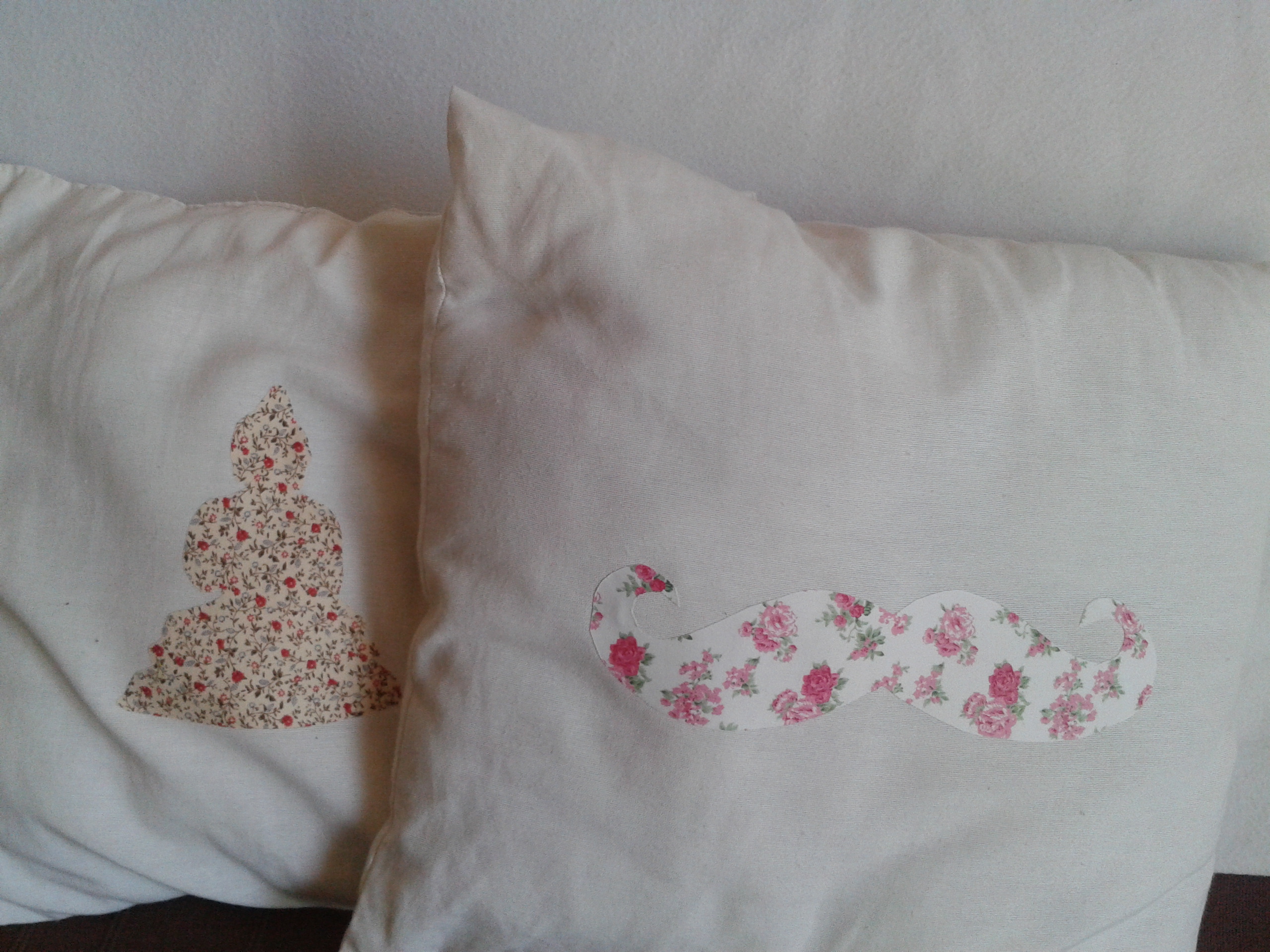 Un tuto de moustache (eh oui je suis contaminée aussi !), et un pour le côté « zen »… je les ai posés sur chaque coussin, comme j’étais satisfaite, j’ai passé le fer ! et voilà, ça ne bougera plus ! je vais aussi le tester sur les leggings de ma fille, je ne sais pas pourquoi…elle a régulièrement des trous aux genoux ! elle joue trop avec ses petits frères !!