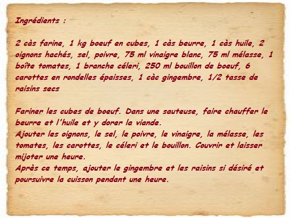 Pourquoi ont-elles appelées ce boeuf « antillais » ? peut-être pour les raisins ? la mélasse ? le gingembre ?