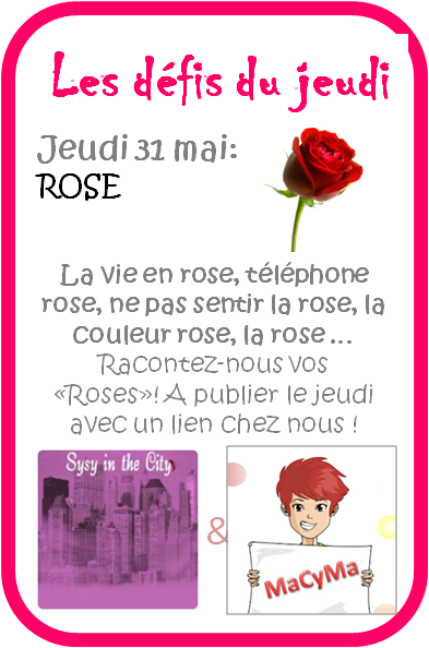 Ayé ma participation est en ligne : http://elsa-saone.over-blog.com/article-defi-du-jeudi-10-rose-105971459.html