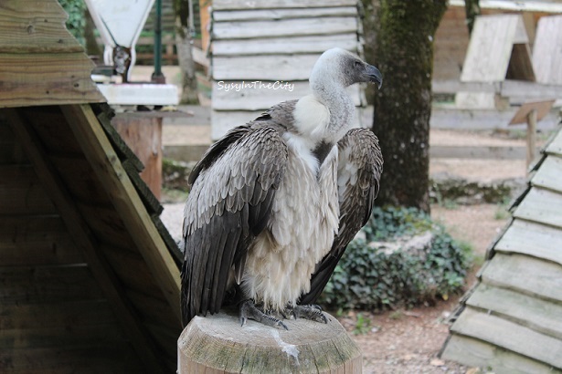 Nous avons donc débuté par la visite du parc, un joli perroquet nous a adressé des « coucou » répétitifs pour le plus grand bonheur des enfants. On a vu des aigles, des vautours, des chouettes, des perroquets, des cacatoès…