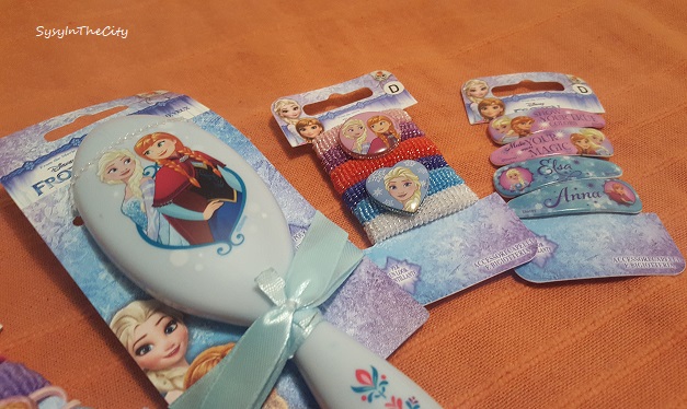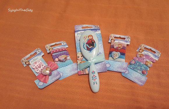 Et puis, pour l’occasion, et le plus grand bonheur de ma petite nièce, j’ai reçu une gamme de produits de la Reine des Neiges. Une très jolie brosse (4.90€) qui existe en deux coloris bleu ou rose. Des élastimousses, des pinces, et des élastiques. Les coloris sont super jolis, j’ai hâte de la voir les porter ![]()