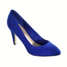 Des escarpins bleu suèdine, chez Ellos, à 29 euros ; la couleur est magnifique !