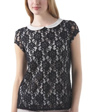 Le Haut en dentelle noir avec son petit col claudine (qui est super à la mode), chez Promod à 29 euros !