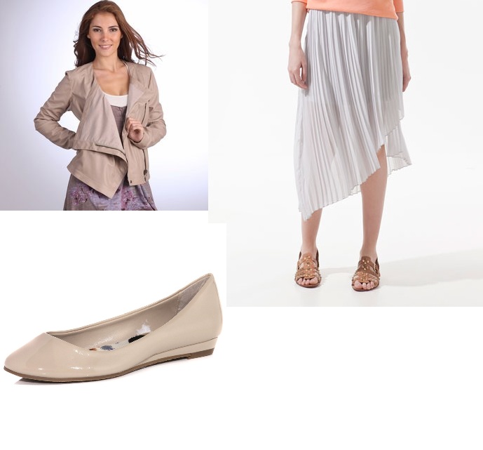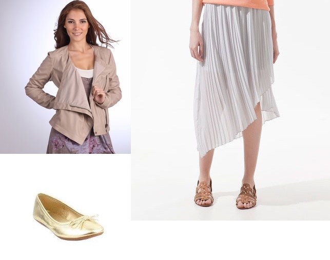 Pour la jupe, j’en ai choisi une plissée asymétrique, une grande tendance du moment, et que je trouve très original et vraiment très classe. La jupe de chez Zara au prix de 39,95 euros, à la Redoute le Perfecto coûte 49,90 euros et les ballerines à 22 euros.