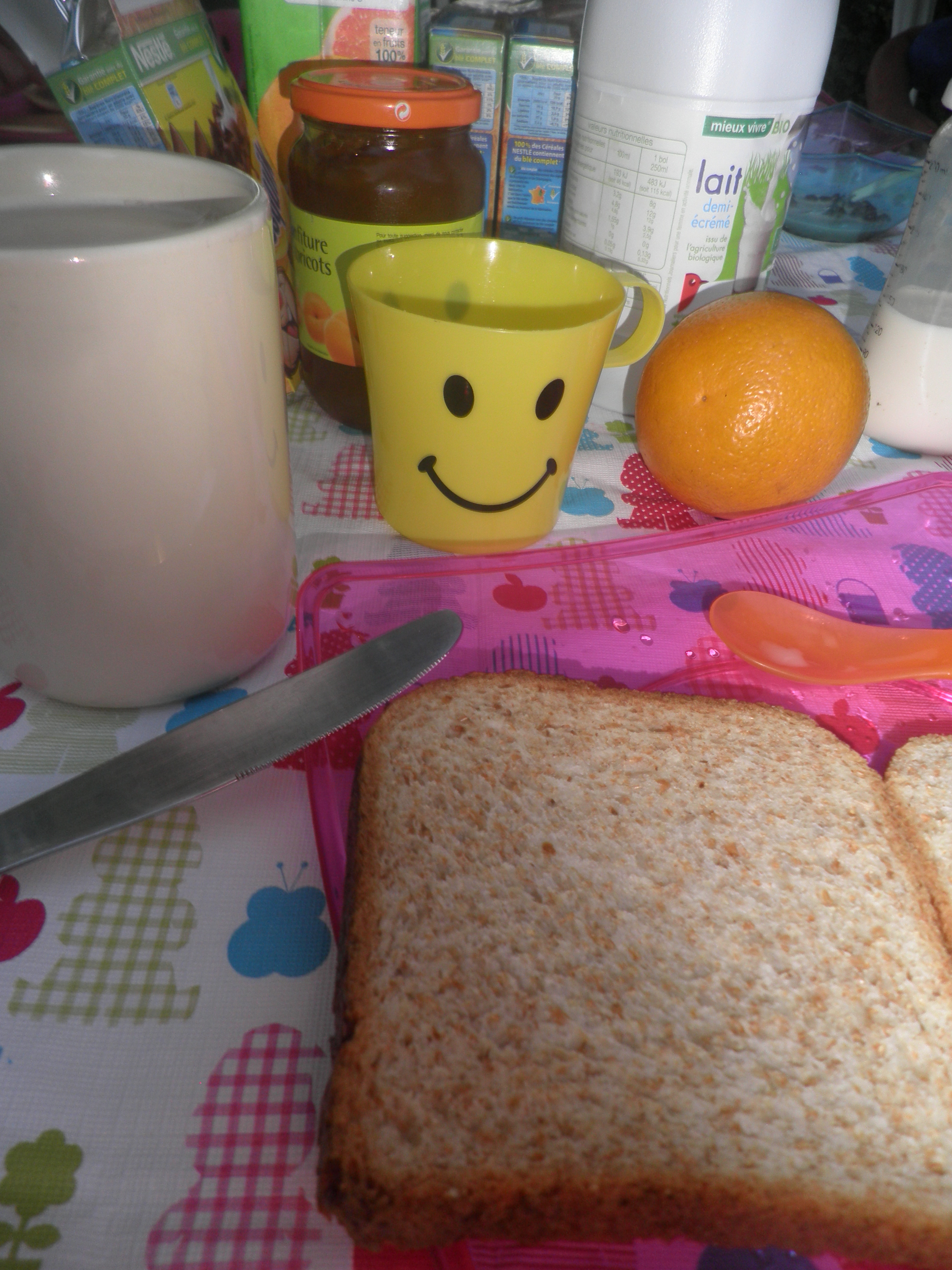 Des petits-déjeuners en terrasse tous les matins, c’est bizarre comme les vacances creusent les estomacs, toute l’année je m’arrache les cheveux pour que HelloKitty et FlashMcQueen mangent ce qu’il faut, et là , ils dévorent, il faudrait même que je les freine !!!